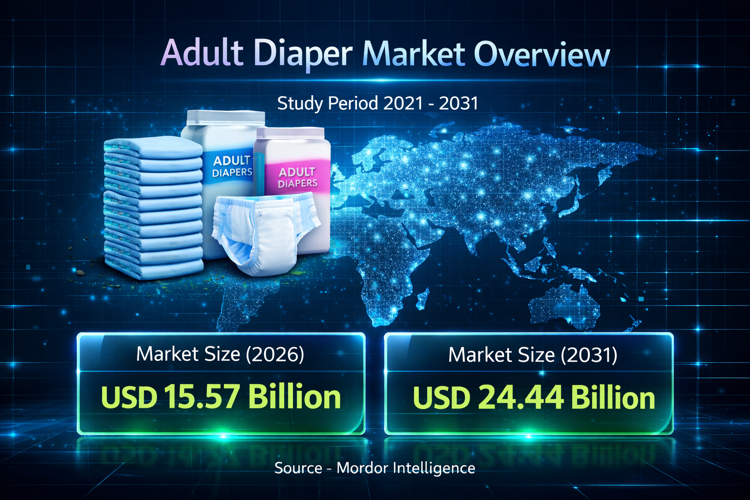 Adult Diaper Marketrket is witnessing steady expansion as healthcare awareness and aging demographics continue to influence demand patterns. According to Mordor Intelligence, the adult diaper market size is estimated at USD 15.57 billion in 2026, growing from USD 14.23 billion in 2025, and is projected to reach USD 24.44 billion by 2031, registering a CAGR of 9.43% during 2026–2031. At the same time, product improvements such as thinner designsthe adult diaper market growthiscreet pant-style options are making adult diapers more user-friendly. The shift toward private purchasing through online platforms is also contributing to the growth of the adult diaper market, as consumers prefer convenience and privacy.