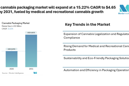 The cannabis packaging market will expand at a 15.22% CAGR to $4.65 bn by 2031, fueled by medical and recreational cannabis growth