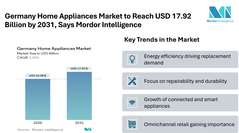 Germany Home Appliances Market to Reach USD 17.92 Billion by 2031, Says Mordor Intelligence